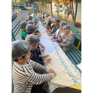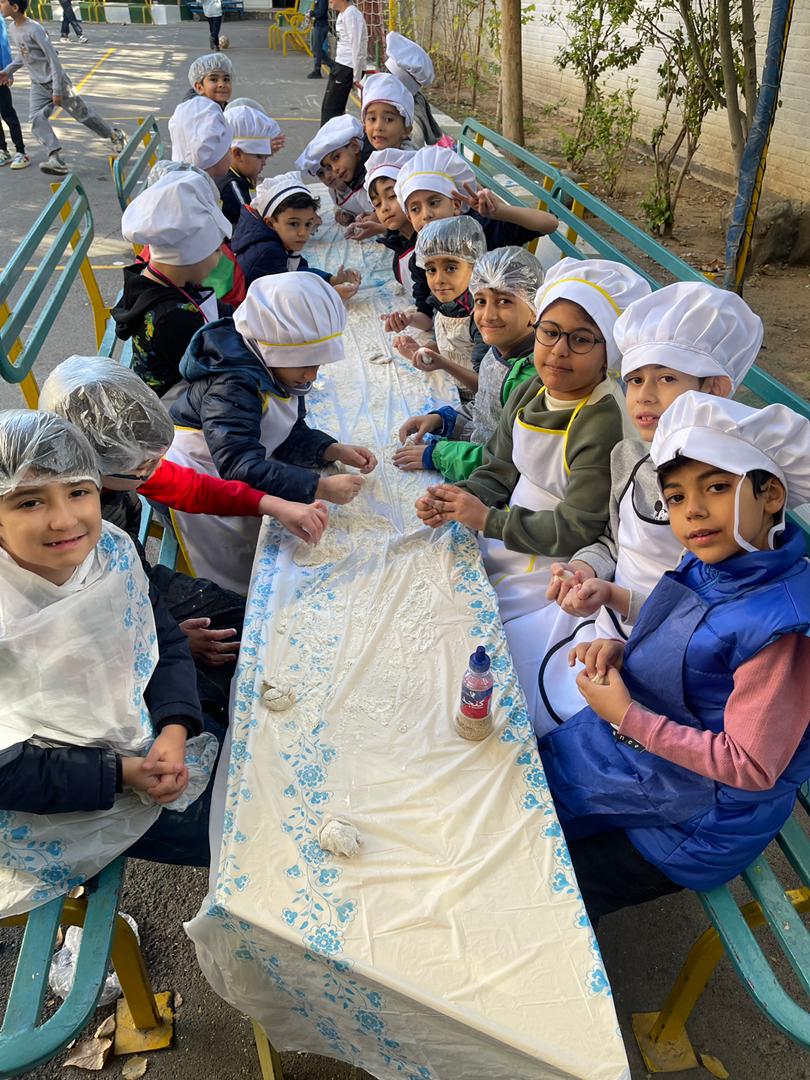 دانشآموزان پایه اول پس از یادگیری حرف «ن»، در کنار معلمان خود جشن نان را برگزار کردند. این برنامه با هدف پیوند آموزش و تجربه عملی طراحی شد؛ کودکان با دستان کوچک و پرشورشان نان درست کردند و لحظاتی شیرین و خاطرهانگیز آفریدند.